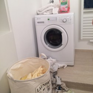 We have a really small washer that heats it’s own water (thank goodness because the hot water heater for showers is not that big) and has super long wash cycles of over 2 hours. It doesn’t require me to fill it with a hose, drain it by hand or even transfer the clothes for the spin cycle. It’s luxury!